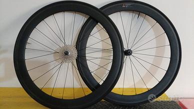 Vendo Ruote corsa in carbonio alto profilo (50mm) per tubolari compresi tubolari come in foto e pacco pignoni shimano nuovo 10 V 11-28