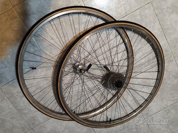 ruote da 28 complete copertoni e camera d'aria,corsa vintage dritte e gonfie in buone condizioni 25 € , leve cambio campagnolo complete 15 €