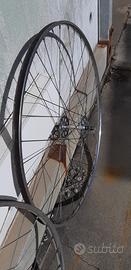 si tratta di una coppia di ruote da pista miste che equipaggiavano una bicicletta Cozzi.