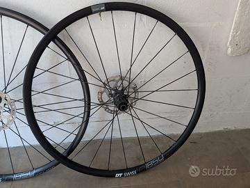 Vendo set di ruote DT Swiss 1850 C Spline in misura 700c, usate prevalentemente in gravel. Ruote robuste, tubeless ready e pronte all’uso. Presentano i normali segni estetici derivanti dall’utilizzo su sterrato, nessun danno strutturale che ne comprometta la funzionalità. Specifiche Modello: DT Swiss 1850 C Spline Diametro: 700c Corpetto: Shimano (compatibile cassette Shimano) Freno: Disc brake, Center Lock (dischi Shimano inclusi) Tubeless: Nastro tubeless e valvole tubeless inclusi Uso precedente: Gravel Condizione e manutenzione Stato meccanico: Mozzi scorrevoli, nessun gioco; centratura verificata. Usura estetica: Segni e graffi tipici dell’uso gravel su cerchi e flange; nessuna crepa o deformazione. Manutenzione: Pronte all’uso; disponibile a inviare foto dettagliate e video della rotazione. Incluso nella vendita Ruota anteriore + ruota posteriore DT Swiss 1850 C Spline Disponbile per ritiro a mano o spedizione.