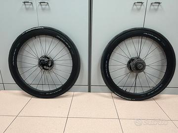 Vendo ruote durace c50 WR9270 comprate a settembre 2023 usate solo per giri domenicali perché in allenamento uso un altro paio di ruote… le ruote sono state revisionate a settembre 2024 con cambio gabbietta a sfere e assi della posteriore e della anteriore…inoltre a gennaio 2024 è stato sostituto anche il corpetto ruota libera! Vendo per passaggio a profilo da 60 Le ruote sono vendute senza copertoni,dischi e cassetta pignoni!