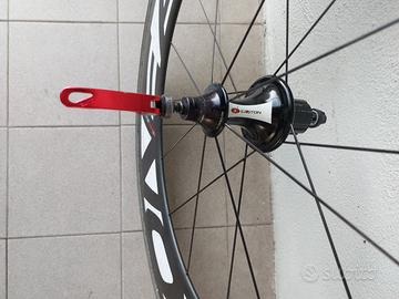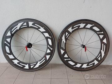 Vendo queste bellissime e veramente leggerissime,coppia di cerchi/ruote in carbonio da 90mm per freni tradizionali rim,EASTON EC90 TT per SHIMANO 10-11v.Il peso della coppia così come si vede in foto è di 2200gr. L'anteriore monta un tubolare CONTINENTAL SPRINTER da 25mm al 80% mentre al posteriore un VITTORIA CORSA da 23mm al 60%. Ruote usate ma ancora in buono stato. Il cerchio posteriore ha le scritte leggermente "scrostate" per la troppa pulizia con prodotto non idoneo,come si può vedere dall'ultima foto.Il corpetto è un 10v tornito per ospitare una cassetta a 11-12v.Ho usato queste ruote fino al mese scorso e non ho mai avuto problemi. Prediligo il ritiro di persona,al quale do priorità, ma posso spedire con spedizione tracciabile al costo di 15 euro, con la soluzione, "viste e piaciute" per evitare che girino,per l'Italiacon i corrieri e tutto quelloche ne consegue.....I miei feedback sono sinonimo di trasparenza e serietà quindi chiedo altrettanta correttezza. Grazie