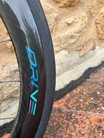 Vendo ruote bici da corsa Perfette ( circa 500km ) Cerchio e raggi in carbonio Corpetto shiamano 11 e 12 velocità Canale interno 23 mm 1,3 kg Prezzo da nuove 1350 euro Regalo dischi dura ace