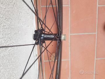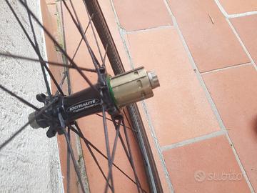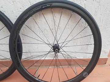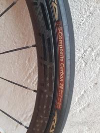 ruote test grigio carbonio/mozzi extralite misura 40mm,tubolare tufo28 raggi tessili,solo 830 grammi, usate come ruote test,7/8uscite ruote leggerissime e performanti.. listino ( sito dream bikes) 4050 euro