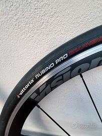 Coppia Ruote incluso rapporti Shimano 11/32 e pneumatici Rubino Pro. Usate per 1200km. In perfette condizioni vendo per cambio bici.