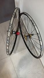 Coppia di ruote MTB top di gamma da 26 pollici per camera d'aria e freni a disco center lock.