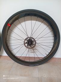 Vendo ruote fulcrum wind 40 in carbonio con cuscinetti sostituiti in ceramica pneumatici e dischi comprese escluso pacco pignioni, corpetto Shimano.