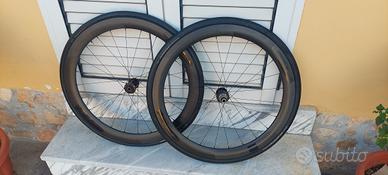 ruote full carbon r5 le stesse che monta la focus 8.8 è altre. Corpetto shimano 11v penso va bene anche a 12v. Aggiungo pacco pignoni Shimano DURACE supeleggero. ruote tenute in modo eccellente senza strisciature. VENDO A 450 EURO.
