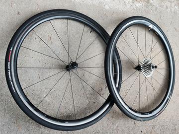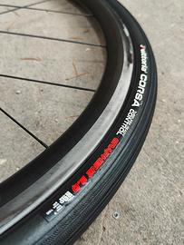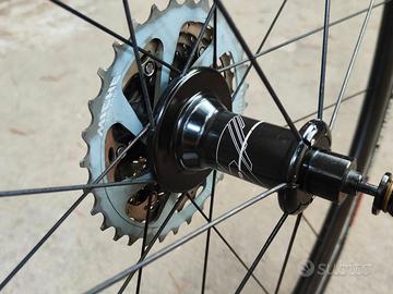 Vendo coppia ruote Giant SLR1 30mm in Carbonio, per freni a pattino rim-brake Acquistate nel 2019 Complete di Copertoni Vittoria Corsa Tubeless Ready Control Graphene 2.0 700x28 cassetta Ultegra visibile in foto 11-32 (è una 11-28 modificata con ultimp pignone Miche 32), opzionale a 30 euro in più. costo del set nuovo di listino (senza coperture) 1160 euro il tutto in ottime condizioni.