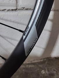 Ruote Gravel usate circa 1000 km, complete di dischi shimano e valvole tubeless giá nastrate, corpetto shimano, per telai con perni passanti. Centratissime con cuscinetti perfetti. Posso spedire