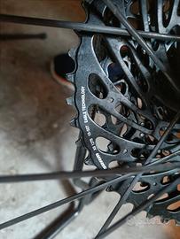 Vendo per passaggio a ruote in carbonio. Le ruote sono perfette. Incluso pacco pignoni sram 12v. 10-50 Ruote già latticizate. Copertoni usati per circa 800km. Consegna a mano. Sono a Legnano.