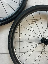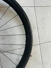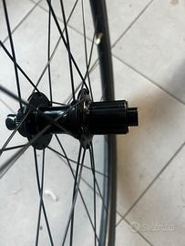 Ruote Gravel DT Swiss 540 Nuove, corpetto Shimano, appena smontate da bici, comprese di pneumatici. Ruota anteriore Cerchio DT Swiss G540, larghezza interna 24 mm, predisposto tubeless (tubeless ready), 24 fori, mozzo Specialized con cuscinetti completamente sigillati e perno passante, attacco disco centerlock, raggi DT Swiss Champion 14G in acciaio inox, nippli DT Swiss in ottone. Pneumatico anteriore Copertone Mondo Folding Endurance, 700x32c, mescola GRIPTON T5. Pneumatico posteriore Copertone Mondo Folding Endurance, 700x32c, mescola GRIPTON T5. Ruota posteriore Cerchio DT Swiss G540, larghezza interna 24 mm, predisposto tubeless (tubeless ready), 24 fori, mozzo Specialized con cuscinetti completamente sigillati e perno passante, attacco disco centerlock, raggi DT Swiss Champion 14G in acciaio inox, nippli DT Swiss in ottone.