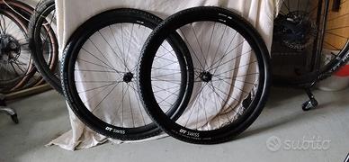 Ruote DT swiss in alluminio con copertoni gravel nuovi mai usati Continental da 45. Mozzi DT boost. Posteriore 148x12 corpetto XD anteriore 110x15 o a scelta anche 12. Ideali per chi vuole trasformare una MTB in gravel. MEGLIO RITIRO IN ZONA