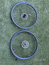 Vendo ruote in alluminio per Gravel o bici da corsa NUOVE - tubless ready con corpetto shimano canale interno c21. Le ruote non hanno percorso nemmeno un metro in quanto sostituite immediatamente da una bici nuova (Orbea Terra Gravel). Perfette anche per bici da corsa, visto il canale da 21 o per qualsiasi altra bici in quanto non presentano marchi particolari. Le ruote hanno corpetto shimano e sono già nastrate per eventuale montaggio tubless. Disponibile per la consegna a mano a Torino N.b. Vendo senza dischi e pacco pignone