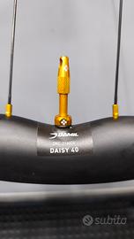 Ruote strada/ gravel in carbonio Damil Daisy 40, canale intero 22mm, peso 1460 complete di nastro e valvole tubeless.
