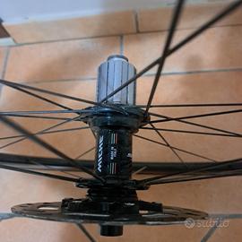 Vendo ruote in carbonio MIKE SWR T38 DX DISCH BRAKE, tubolari in ottimo stato ruote utilizzate solo una stagione.