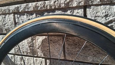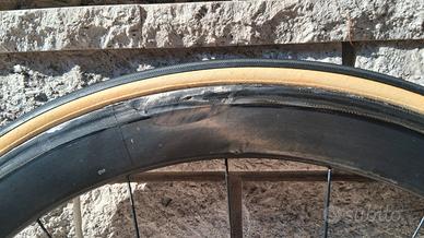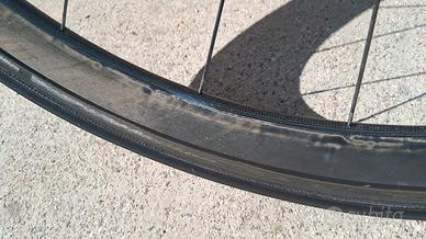 In buone condizioni, ruota posteriore riparata ma perfettamente funzionante, cuscinetti a posto, tubolari.