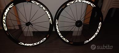 Vendo ruote in carbonio Mavic Cosmic, profilo da 40 mm, per tubolarr, per freni rim. Perfetti, usati pochissimo.