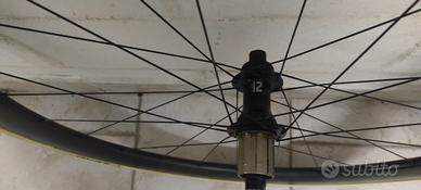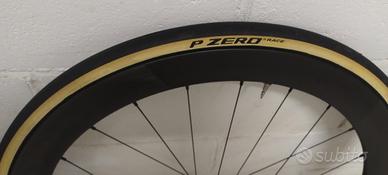 Ruote Novatec R5 in carbonio 50 mm disc, copertoncino con corpetto Shimano 12 velocità, le ruote sono dritte senza un graffio, sono compresi i copertoni Pirelli P zero.
