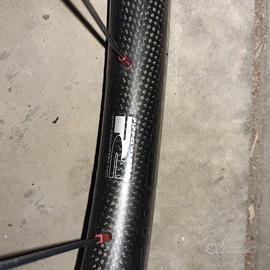 Coppia ruote in carbonio Jottaligth ,altezza 32mm ,canale da 19mm,24 raggi. Dischi da 140mm,corpetto Sram 12v,mozzi Toot. Assemblate da Pippowheels Vicenza.