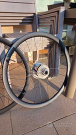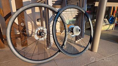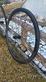 Vendo ruote in carbonio alto profilo in carbonio Syncros Capital 1.0 con profilo da 35 mm. Ruote leggere da salita smontate da una bici nuova, comprate a giugno 2025 e usate per pochi km. Non hanno alcun segno di usura, graffi, difetti o altro. Ruote pari al nuovo. Ottime anche per gravel. Di seguito le caratteristiche: Set di ruote leggere da scalata, il Capital 1.0 35, dotato di cerchioni in fibra di carbonio UD con profilo alto 35 mm. Il cerchio, Tubeless Ready, ha un moderno canale da 21 mm. Entrambe le ruote hanno 24 raggi e un corpetto ruota libera a 6 dentini. Valvole tubeless, copertoni, dischi freno e pignoni esclusi. Solo ruote nude. Cerchio: fibra di carbonio, profilo 35mm. Canale interno 21mm Mozzo anteriore: Syncros a raggi dritti, Centerlock Mozzo posteriore: Syncros a raggi dritti, 78T, ruota libera a 6 dentini, Centerlock per shimano 11 e 12v. Accessori: nastro coprinipples, corpo ruota libera Shimano. Ruote già predisposte per il tubeless. Preferisco scambio a mano ma posso anche spedire, con spese a carico dell'acquirente. Ho messo un prezzo indicativo. Prima di ordinare concordiamo il prezzo di spedizione o meglio, la prenotate voi.