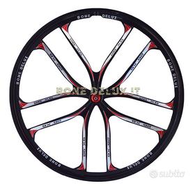 Coppia di ruote in lega di magnesio, con sistema quick release.