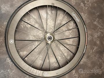 Coppia ruote Lightweight Meilestein Disc Tubolare gommate seminuove Tufo carbon 25” acquistate nel 2021 usate raramente, mai gran fondo o gare,vendo causa inutulizzo. Ruote perfette, dritte, senza un segno con corpetto shimano duraace 12V . Peso ruote 1120 gr. Vendo con borse originali.Inoltre è compresa una coppia di tubolari NUOVI Vittoria corsa pro da 25” grafene+silice