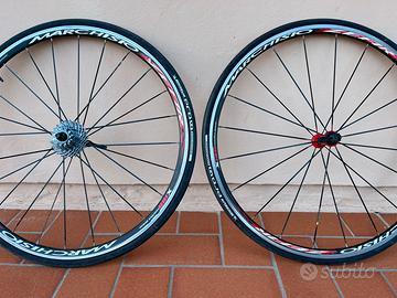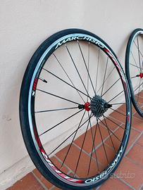 Vendo ruote da corsa marchisio zefir x100 in alluminio con corpetto shimano. Ruote leggere, scorrevoli e in ottimo stato.
