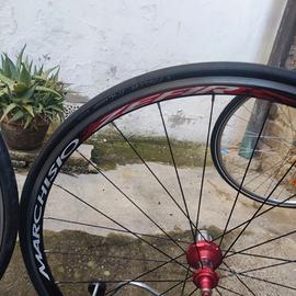 Cerchio: a profilo medio, altezza 24 mm all'anteriore e 27 mm al posteriore, in alluminio con giunta saldata e bilanciata: precisionedi guida, frenata impeccabile, bassa inerzia alle alte velocità.