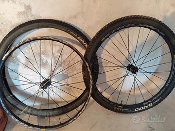 Vendo ruote MTB mavic cross max elite 29 in alluminio. Canale 25. tubeless. boost. ruota libera HG. ruote in ottime condizioni con qualche segno di usura. complete di ruote victoria Barzo 2.25 in ottimo stato. da cambiare solo le valvole. tutto usato pochissimo. prezzo non trattabile. preferisco ritiro di persona.