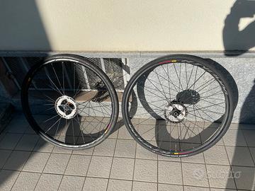 Vendo bellissime ruote mavic con dischi ultegra e cassetta 11 v shimano, copertoni 80%