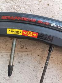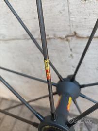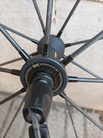 Vendo una coppia di bellissime ruote Mavic SSC R-SYS SLR per bici da corsa, cerchi in alluminio C15 con stupenda pista frenante nera exalith (zigrinata). Per copertoncino Raggi in carbonio sia all'anteriore che al posteriore Ruote super performanti, scorrevolissime, condizioni pari al nuovo! mai cadute, nessun graffio o botta sui cerchi. Mozzi perfetti, nessun rumore/gioco. Vendute con corpetto Campagnolo 11v e pacco pignoni in foto, copertoni vittoria da 25mm e sganci rapidi originali. Possibilità di spedizione con pacco tracciato e consegna in 2-4 giorni lavorativi