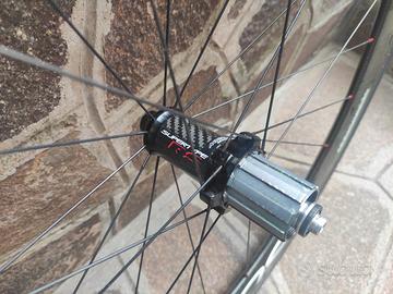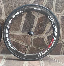 Vendo set ruote corsa full carbon Miche Supertype 558 rs in ottime condizioni con tubolari Vittoria corsa control da 25 ancora buoni. Altezza profilo 58 mm per entrambe le ruote. Complete di pacco pignoni 11v (11-25) semi nuovo e un tubolare Michelin pro4 nuovo.