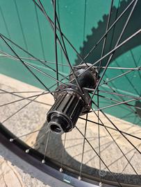 vendo ruote mtb 27.5 plus con cerchio in alluminio canale interno da 35mm marca Rodi, mozzo shimano perno passante boost e ruota libera shimano, attacco freni centerlock, vendo come in foto con camere d'aria schwalbe e copertoni kenda 27.5 x 2.6 ruote pari al nuovo usate una volta per un giro su strada e smontate da bici nuova, sostituite con ruote da 29"