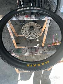 Ruote Mtb bontrager kovee tlr 29 bost 15x110/148 nastrate è latticizzate complete di corpetto micro spline,dischi shimano deore 160mm,pacco pignoni deore m6100 gomme maxxis ant aderent race 29x2.2 post rekon race 29x2.25. In ottime condizioni piccolo segno sulla posteriore come si vede in foto ma non pregiudica il funzionamento gira dritta, non perde aria.