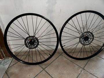 Coppia di ruote anteriori e posteriori da Mtb boost marca Sincros con canale da 30. Completi con disco centerlook 180 anteriore 160 posteriore, predisposti per il tubles.