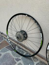 Vendo coppia di ruote DT Swiss H1800 per MTB, formato 29”, in buone condizioni generali. 🔧 Specifiche: •Cerchi in alluminio •Standard NON Boost (anteriore 100 mm, posteriore 135/142 mm) •Attacco disco: Center Lock •Ruota libera Shimano/SRAM HG (compatibile 11v) •Incluso pacco pignoni Shimano 11 velocità (usato ma funzionante) Le ruote sono dritte, girano bene, con normali segni d’uso ma senza botte né danni strutturali. Ottima soluzione per chi cerca un upgrade affidabile o un set di scorta.