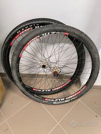 Ruote MTB 29 pollici assemblate, molto leggere, perno passante senza dischi freno. Usate in discreto stato di conservazione.