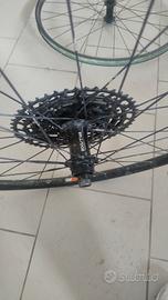 vendo coppia di ruote come da titolo,per cambio tipologia,le ruote sono usate ma in buona stato,cuscinetti mozzo posteriore appena sostituti. sono già nastrate tubeless,regalo pacco pignone come in foto. possibilità di spedizione a carico dell acquirente,oppure ritiro a mano.