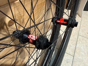 Ottima Occasione Ruote assemblate Cerchio in carbonio, canale da 26mm Altezza 28 Mozzo DTSwiss 240 Standard Boost 15*110 ant 12*148 Post Corpetto MicroSpline ( Shimano 12v) se serve posso sostituire con Shimano HG o SRAM XD Peso Nude circa 1250gr