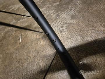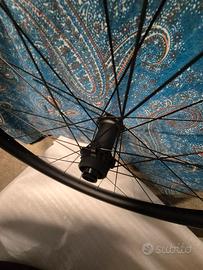 Ruote MTB 29" carbonio Set di ruote in carbonio nuove, mai utilizzate con seguenti caratteristiche: - fibra T800+T1000 - colore: nero opaco, finitura UD - geometria: asimmetrico - canale interno: 32mm - tipologia coperura: hookless - tipologia mozzi: boost in lega 7075 colore nero opaco (15x110 anteriore, 12x148 posteriore) N. 28 raggi ogni ruota Attacco freno center lock Ruote mai utilizzate, vendo x cambio progetto