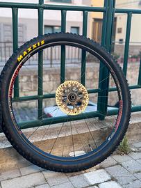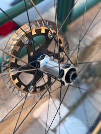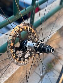 Coppia di ruote DT Swiss X1700 Spline 2, complete di corpetto SRAM XD e dischi flottanti Magura da 180 mm (con usura stimata al 20%).