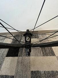 ruote per mtb, con mozzo INDUSTRY NINE HYDRA. i cerchi sono in carbonio, i raggi e nipples sono sapim.
