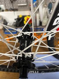 Fantastiche ruote in carbonio per MTB canale interno 31mm chiuso. Montati con raggi tessili Berd 15x110 12x148 Corpetto Xd Attacco disco 6 fori
