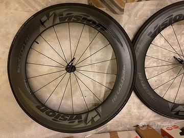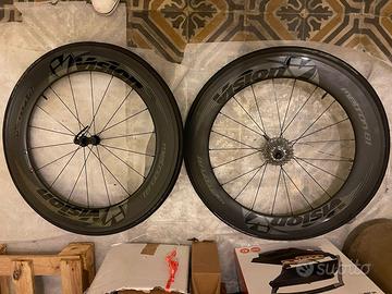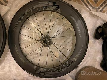 Ruote in perfette condizioni. Vision Metron 81. Modello per freni a pattini. Complete di coperture e cassetta. Camera d’aria e copertoni immacolati. Ottime per crono e triathlon