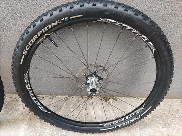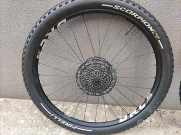 Ruote 29 pollici, canale 28mm, boost e corpetto SRAM XD. Peso circa 1500g.