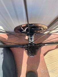 Come da titolo vendo ruote shimano durace basso profilo con tubolari da 25 con pochi km, dischi freno durace e pacco pignoni 11 velocità durace.