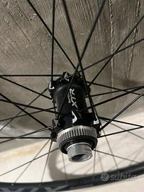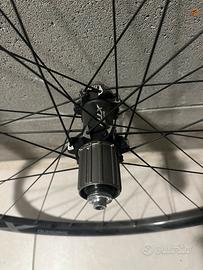 Ruote shimano in carbonio freni a disco nuove mai usate leggerissime.. particolarità monta solo tubolari ruota anteriore perno passante e ruota posteriore sgancio rapido… non so se togliendo boccola dal mozzo possa essere usata con perno passante anche al posteriore.. ideale per gravel e ciclocross