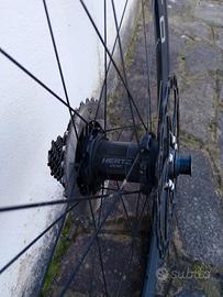 Vendo coppia di ruote Spada Stiletto per ruote a disco, corpetto Shimano. Ottime condizioni, usate molto poco. Mozzi Hertz carbonio. Solo ruote nude