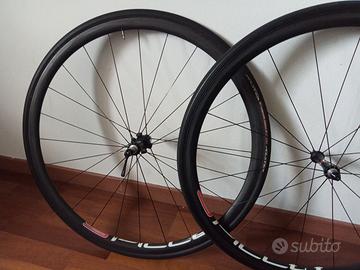 Ruote Spada modello Spillo con tubolari tufo carbon 80 %per shimano freni rim brake Spillo, ruote full carbon T800 per tubolare con profilo da 27mm dal peso di 840 grammi, un set perfetto per ogni salitomane, montato sui prestigiosi Mozzi Cristallo realizzati in carbonio.